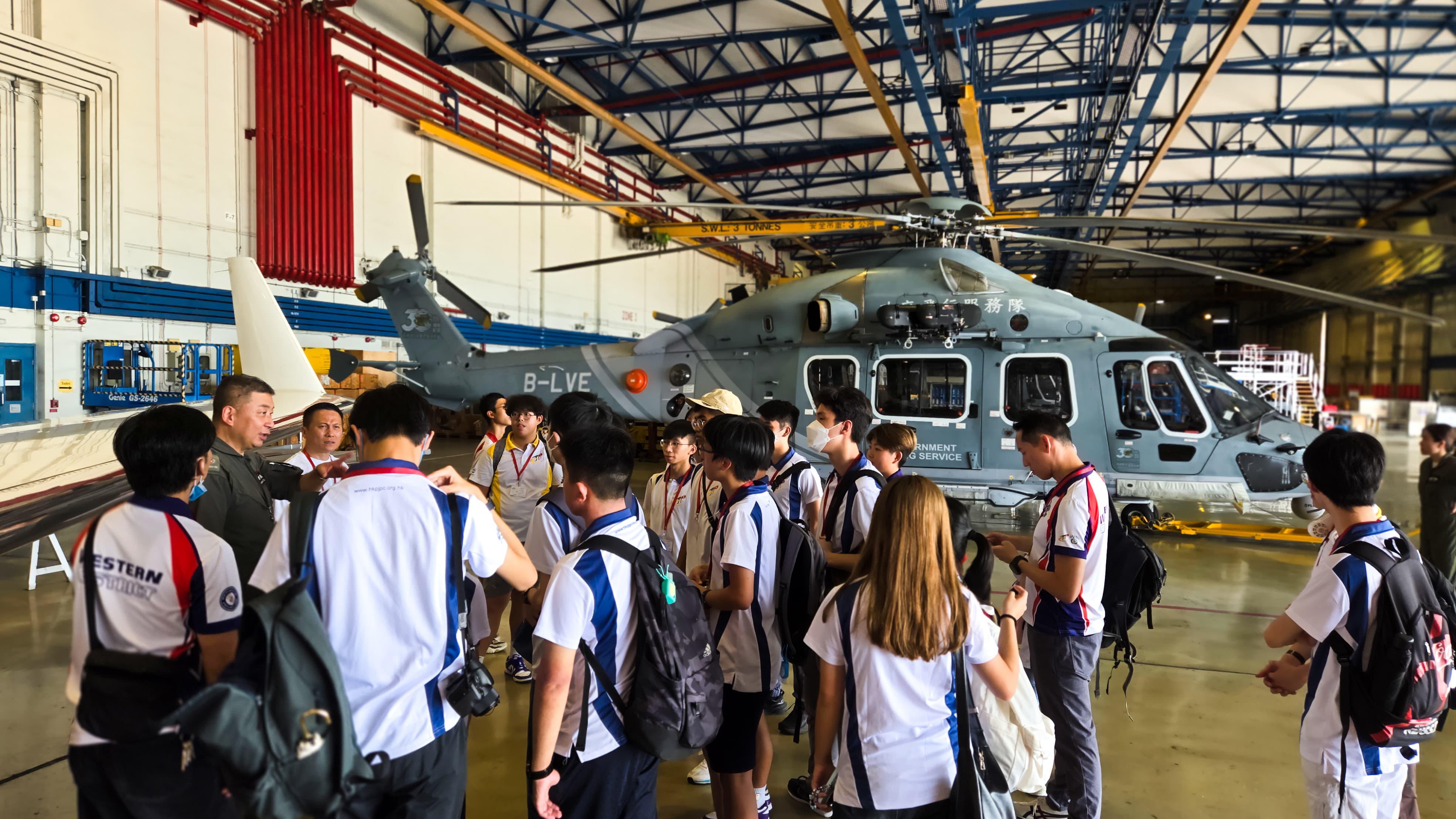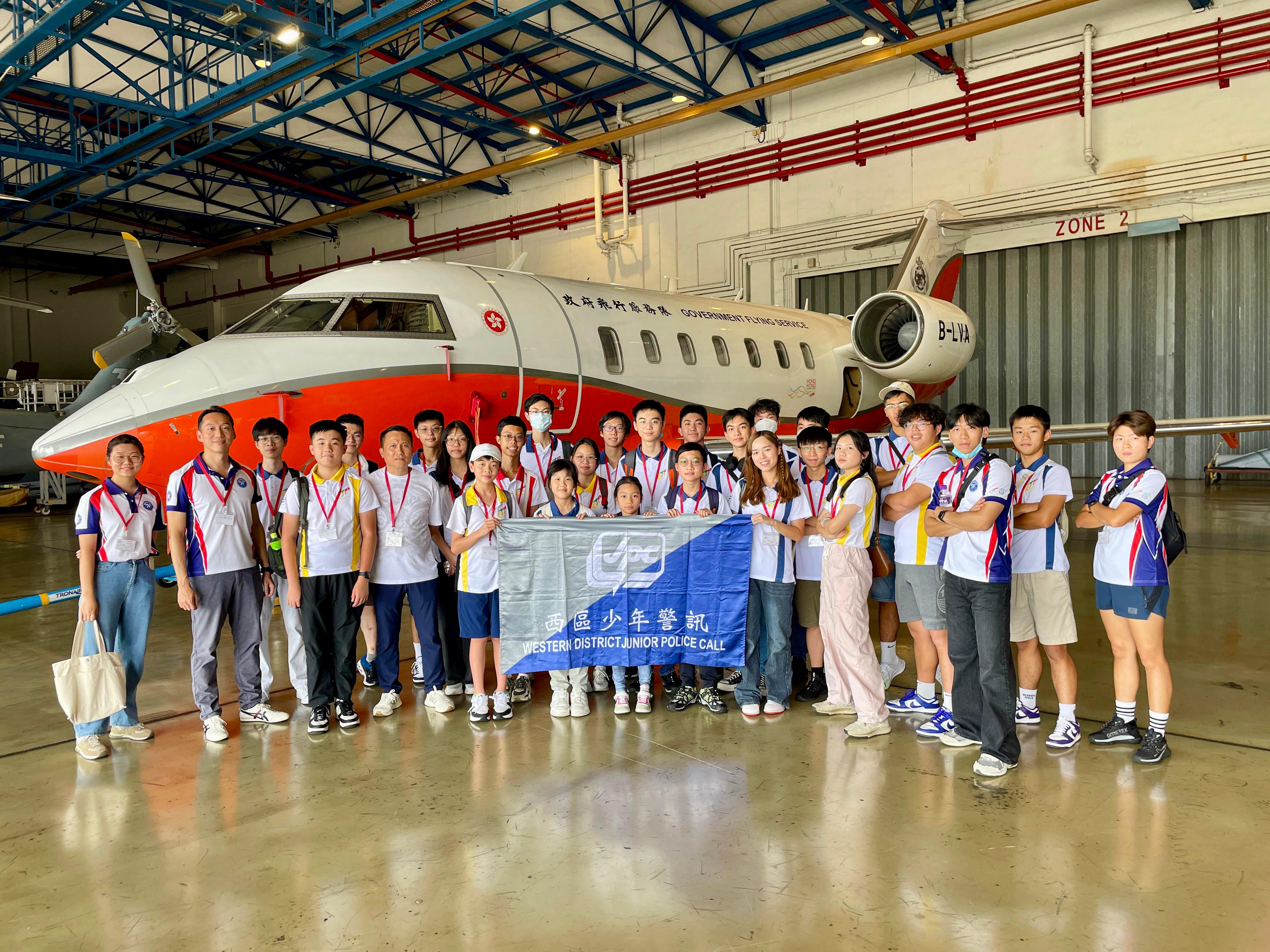 During a recent visit, a group of 32 youths from the Western District Junior Police Call visited the GFS Headquarters at Chek Lap Kok. The visit began with an informative presentation by GFS representatives, who explained the Department's missions, functions, and the importance of our work. The visitors learned about the GFS fleet, including helicopters and fixed-wing aircrafts, and how these resources are utilized in our search and rescue missions, firefighting, medical evacuations, and law enforcement operations.